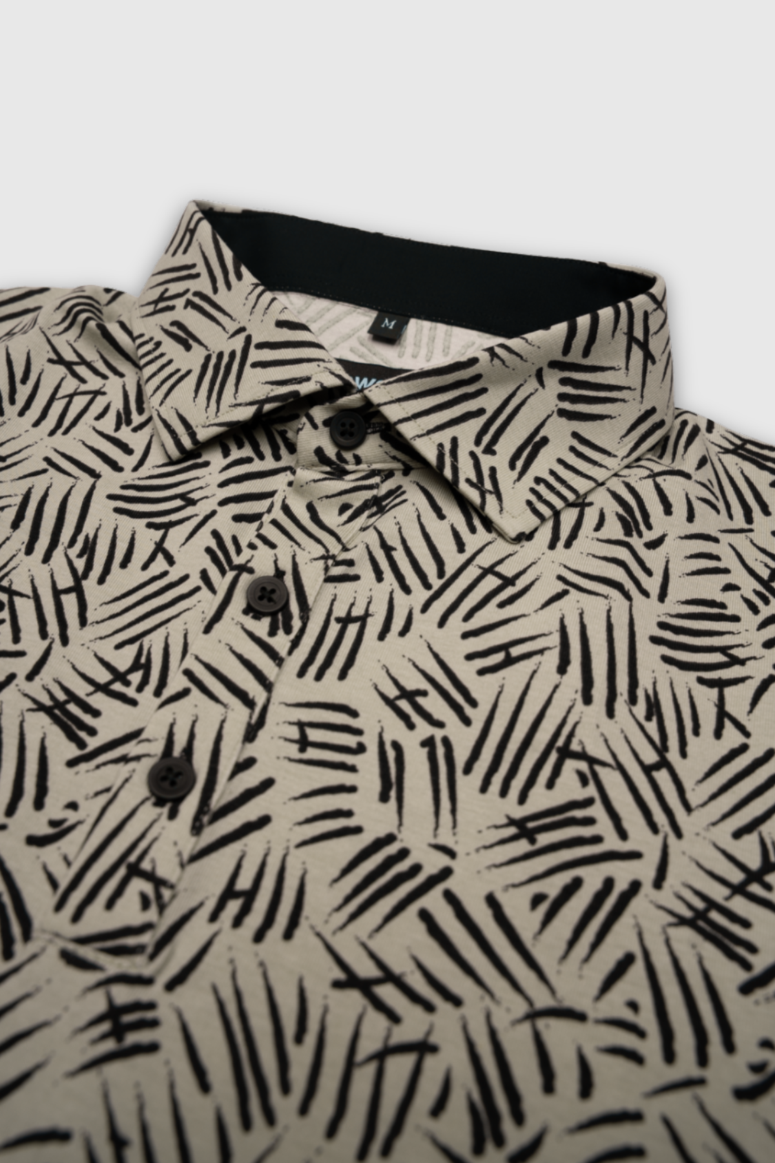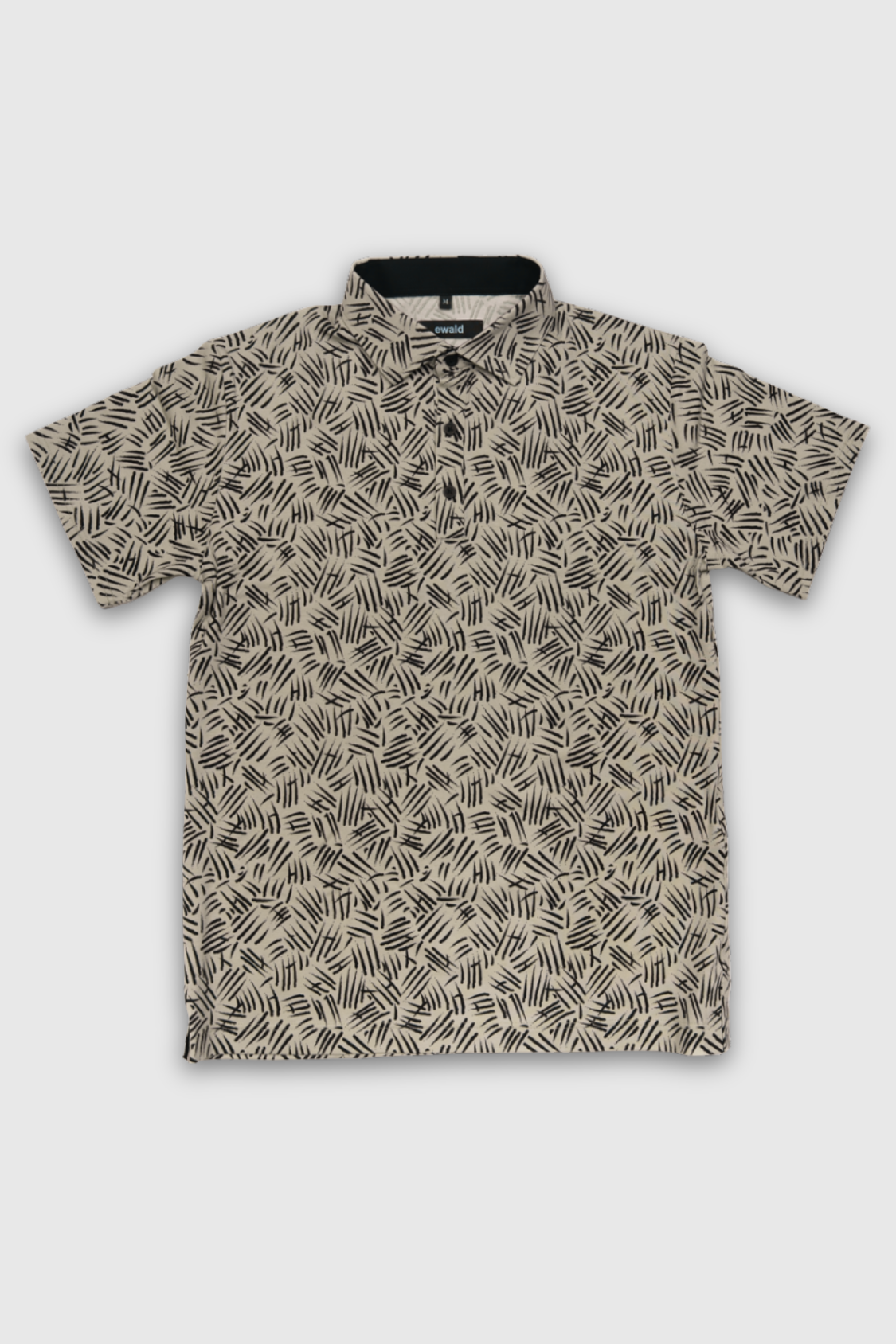 Meeste beez polosärk, mille must muster mõjub justkui spontaanne visand – dünaamiline, rütmiline ja pilkupüüdev, kuid samas piisavalt neutraalne, et sobituda igapäevase riietusega.