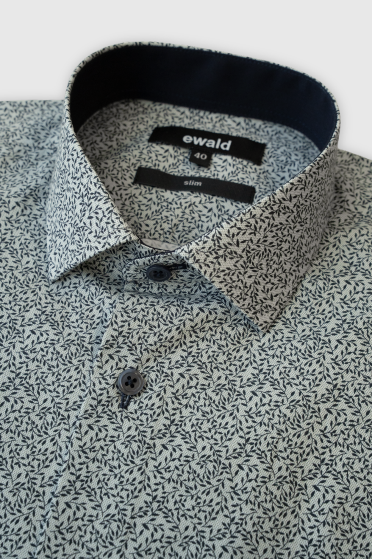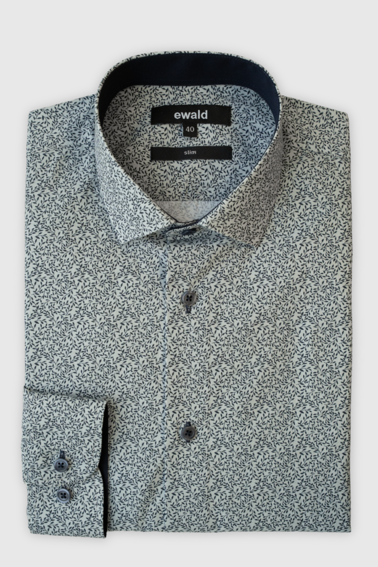 Tumesinisel põhjal rikkaliku lehemustriga meeste pikkade varrukatega triiksärk.