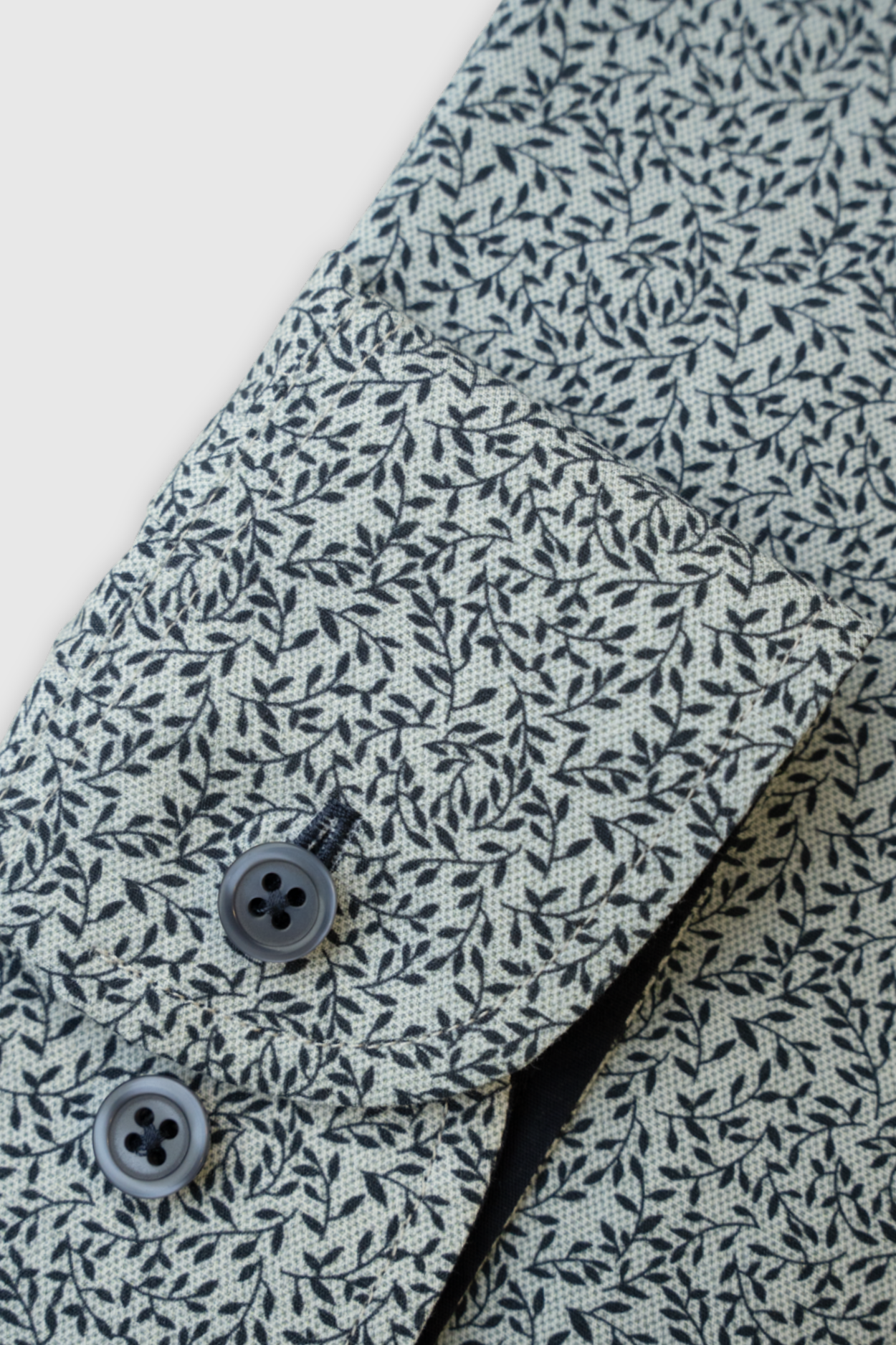 Heledapõhjaline väikese leheprindiga meeste pikkade varrukatega triiksärk.
